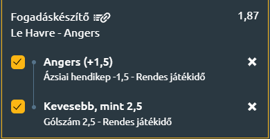 Tipp: Angers +1,5 és kevesebb, mint 2,5 gól a meccsen