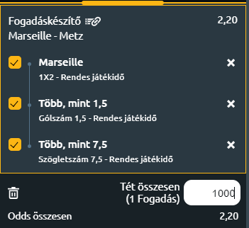 Tipp: Marseille nyer + több mint 1,5 gól a mérkőzésen + több mint 7,5 szöglet a mérkőzésen