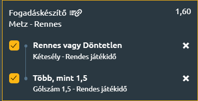 - Mit várhatunk mindezek alapján? A két csapat formáját összevetve egyértelműen a Rennes érkezik jobb előjelekkel, különösen támadásban jobb, míg a Metz védelme ingatag. Döntetlennél rosszabb eredmény nem lesz vendégszempontból és minimum két találat várható!