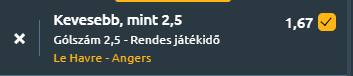 Ezek az ötletek kiválóan alkalmasak arra, hogy egy kétmeccses duplázóban az egyik tagot adják. Az odds alacsonyabb, viszont ezzel párhuzamosan a kockázat mértéke is csökken. A francia Ligue 1 13. fordulójában két alsóházi csapat találkozik, akik mindketten a kiesés elkerüléséért küzdenek. Le Havre, a 14. helyen álló újonc, a 17. helyezett Angerst fogadja. Mindkét csapatnak nagy szüksége van a pontokra, hogy távolabb kerüljenek a kiesőzónától.
