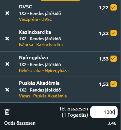 Magyar Kupa meccseket rendeznek a hétvégén, ahol az NB1-es csapatok is pályára lépnek. A Tippmixprón választható összecsapások közül választottam egy kövér triplázó szelvényre valót!
