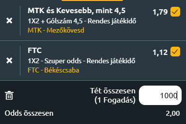 - Márpedig az MTK az élvonal prominens képviselője, ott is a jobbak közé tartozik. A gárda teljesítménye hullámzó, mint mindig, a bravúros sokgólos győzelmek és a váratlan és megmagyarázhatatlan vereségek követik egymást, ám mára már a győzelmekből és a jó teljesítményből van több. A gárda csatárteljesítménye kiváló 24 lőtt góllal áll az MTK, ennél csak a Paks szerzett többet! Teljesen egyértelmű, hogy a kiismerhető és jól megtippelhető Kövesd nem bír majd az MTK-val, de mivel a kék-fehérek valószínűleg rotálni fognak a hétvégi Örökrangadó miatt, nem lesz kiütéses győzelem.