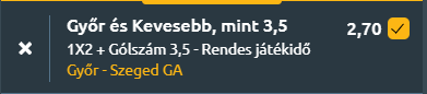 - A tippem hazai és kevesebb, mint 3,5 gól a meccsen – egy igen kiváló szorzóért.