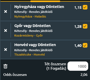 - Nyíregyháza – Haladás: A Nyíregyháza most már nem csak kiválóan védekezik, hanem remekül támadnak is! Tímár Krisztián remek munkát véget a szabolcsi gárda élén, amit ellesett Angliában, most remekül kamatoztatja. A Szpari fel fog jutni, nem hiszem, hogy akkorát zuhanna a teljesítményük. Egy biztonságos 1X a tippem.