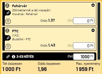 - A Fehérvár pedig legutóbb könnyedén filézte ki a z Újpestet 0-5 lett a vége. A Kisvárda sem lesz képes nyerni, a sima vendégsiker 1,84, ha pedig kizrájuk a döntetlent, akkor igazán biztonságos, remek tippet kapunk!