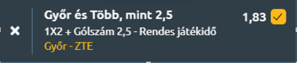 - A mai meccsen a minőségi különbségek és a hazai pálya előnye miatt abszolút a Győr van előnyben, minden bizonnyal megnyerik a meccset, de a ZTE bátor támadójátéka, a villámgyors támadók kapura veszélyes játéka gólt érhet. Tehát a Győriek győzelme mellett a minimum három gólt is bekötöm a tippbe.