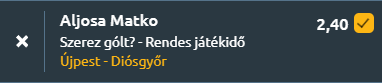 - Diósgyőrben is az aranyért fognak harcolni jövőre és utána, csak egy szinttel lejjebb! Kifejezetten kedvelem a miskolciakat, patinás egyesület, abszolút élvonalat érdemelne! De ahol hagyják, hogy ilyen dilettáns szakmai vezetés kormányozzon, az a csapat megérdemelten esik ki. Egyetlen reményük van, a balf.sz MTK, amely egy remek csapatot zúz tönkre most néhány hét alatt! Olyan, mintha direkt ki akarnának esni!? Mindenesetre, a Diósgyőr a Radenkovic-Kovács kettőssel zuhan az NB2 irányába. Legutóbb kihasználták a Paks hullámvölgyét és sikerült nyerni, de az Újpest ellen, idegenben nem lesz esélyük. Sima hazai győzelmet várok és Matko-gól is kinézhet könnyedén, szintén erős szorzóért!