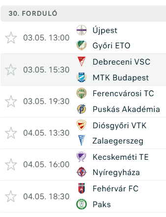 - 30. forduló: