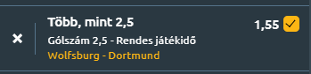 - A mérkőzésen több gól várható, mivel mindkét csapat védekezésbeli problémákkal küzd. A Wolfsburg hazai pályán gyenge formát mutatott, és a védelem több sérült játékosa miatt kiszolgáltatottabb lesz. Ezzel szemben a Dortmund ugyan eredményes a támadásban, de védekezése ingatag, amit a legutóbbi mérkőzéseken kapott számos gól is alátámaszt. Ráadásul a Dortmund most különösen győzelmi kényszerben van, ami még inkább támadójátékra ösztönözheti őket, miközben a védelmük továbbra is sebezhető marad.
