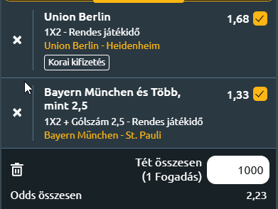 - Union Berlin – Heidenheim: Az Union legutóbb 1–0-ra győzte le a St. Paulit, stabil védekezéssel és mindössze két kapott lövéssel az első félidőben, majd a vezetés birtokában tudatosan hátrébb húzódva. Steffen Baumgart együttese két kapott gól nélküli meccset hozott le az utóbbi háromból, miközben 15 pontot gyűjtött, ami eggyel kevesebb a tavalyi azonos szakaszhoz képest, viszont 14 rúgott góljuk öt találattal több, mint egy évvel ezelőtt. A csapat négy mérkőzés óta veretlen, köztük a Bayern München elleni figyelemre méltó 2–2-vel, és bár hazai pályán az utóbbi öt meccsből hármat döntetlenre adtak, mindegyiken elkerülték a vereséget, a szezonban pedig csak egyszer kaptak ki hazai pályán. A Heidenheim viszont egyetlen nagy helyzetet sem alakított ki legutóbbi, Gladbach elleni veresége során, és az elmúlt négy meccsen mindössze egy gólt szerzett. A vendégek még nem hoztak le kapott gól nélküli bajnokit. Jelenleg hétmeccses nyeretlenségi sorozat fenyegeti őket. Frank Schmidt csapata ötből öt idegenbeli vereséget szenvedett el, összesítésben 14–2-es gólaránnyal. Az Union győzelmén kívül minden más eredmény meglepetés lenne!