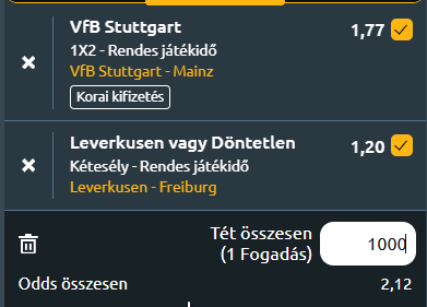 - Bayer Leverkusen – Freiburg: A Leverkusen a Mainz elleni bajnokin 4–3-ra nyert, és végig uralta a találkozót, hiszen 18 lövést eresztett meg a tizenhatoson belülről, valamint hét nagy helyzetet alakított ki, szemben az ellenfél két komoly lehetőségével. Kasper Hjulmand vezetésével a csapat stabilan teljesít a bajnokságban, az eddigi öt meccséből négyet megnyert és egyet döntetlenre hozott, ugyanakkor a nemzetközi porondon gyengébben szerepelt, hiszen két döntetlent és egy 7–2-es vereséget jegyez a Bajnokok Ligájában a PSG ellen. A Freiburg ezzel szemben kiegyensúlyozott formát mutat: legutóbbi nyolc meccsükön nem szenvedtek vereséget, négyet megnyertek, és összesen 14 gólt szereztek, miközben csak hatszor kapituláltak. Julian Schuster együttese hatékony a rögzített szituációkban, hiszen hat gólt szerzett pontrúgásból, ám ebben a mutatóban a Leverkusen még jobb, hét találattal. A statisztika a hazaiak mellett szól, hiszen a Freiburg az elmúlt öt egymás elleni mérkőzésen egyszer sem tudta legyőzni őket. Mindezek alapján a Leverkusen várhatóan dominálni fogja a játékot, és bár a Freiburg kemény ellenfél lesz, Hjulmand csapata nem kap ki!