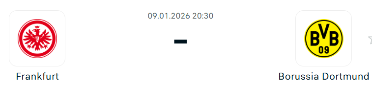 - A Borussia Dortmund a Mönchengladbach elleni 2–0-s győzelemből érkezik, ahol Julian Brandt és Maximilian Beier gólja döntött, és jelenleg a második helyen áll a bajnokságban. A téli szünet előtt stabil sorozatot futottak, kilenc meccsből négyet megnyertek, és csak egy vereséget szenvedtek el. Idegenben különösen gólgazdag mérkőzések jellemzik őket, mivel az elmúlt nyolc vendégfellépésükből hét alkalommal mindkét csapat eredményes volt, miközben a Frankfurt elleni párharcok is rendszeresen gólváltást hoztak.