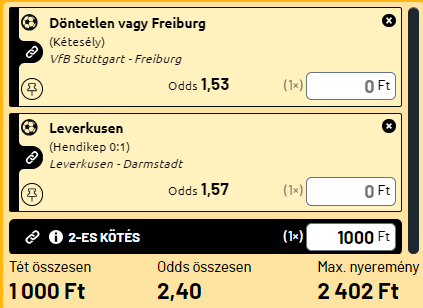 - Leverkusen – Darmstadt: A gyógyszergyári egyesület tavaly október óta, amióta Xabi Alonsót kinevezeték, rengeteget fejlődött. Először a kieső zónából az EL-be juttatta csapatát, majd idén meggyőződésem, hogy a dobogó és így a BL-csoportkör is esélyessé válik. Az idényrajtjuk remek volt, a Teutonia Ottersen elleni 8-0-ás kupasikert követően a Leverkusen a nyitó hétvégén 3-2-re legyőzte az RB Leipziget, majd legutóbb 3-0-s győzelmet aratott idegenben a Borussia Mönchengladbach ellen. Ami pedig a legfontosabb, sokpasszos spanyolos stílussal, meggyőző gólerős játékkal! A tavalyi csapat kulcsjátékosa Moussa Diaby-t az Aston Villához szerződött, de az érkezőkkel (Nathan Tella, Granit Xhaka, Jonas Hofmann és Alejandro Grimaldo és Victor Boniface) nemhogy hasonló erőt képvisel, hanem sokkal erősebb is lett a gárda! A Darmstadt négy gólt kapott az Union Berlin ellen úgy, hogy a meccs jelentős részében emberhátrányban voltak, a nyitóhétvégén pedig a Frankfurt verte őket magabiztosan. Óriási különbség van a két gárda között.