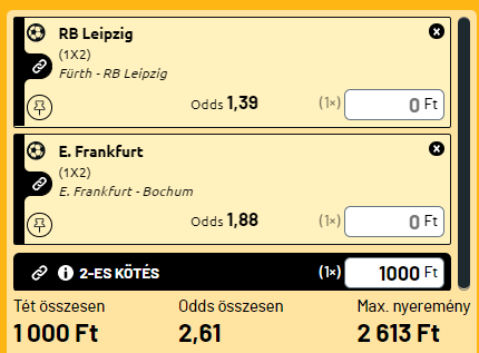 - A Frankfurt három vereség után legutóbb végre győztesen hagyta el a pályát, Berlinben alázták meg a mostanában pofozózsáknak használt Hertha BSC-t. Ez a győzelem alighanem lendületbe hozta a virslis-csapatot ahhoz, hogy az eggyel mögöttük álló Bochum ellen, otthon, eséllyel vegyék föl a küzdelmet. A két csapat közti különbség a támadóerőben rejlik. Amíg a Bochum 27 találatot szerzett az eddig lejátszott 25 fordulóban, a Frankfurt 37-nél jár, a védekezések pedig nagyjából azonos erősségűek. Ehhez hozzájön a hazai pálya előnye, valamint a sérültek frontján tapasztalható kettő a néggyel szembeni helyzet. Frankfruti győzelem várható: