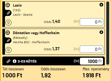 - Az olasz bajnokságból mindössze csak 7 forduló telt el, ezeken a Lazio összesen 14 pontot szedett össze, lőttek 13 gól és csak ötöt kaptak! Ennél kevesebbet mostanáig csak az Atalanta kapott, illetve a Juventus holtversenyben. A Patrick-Casale középhátvéd duó remekül teszi a dolgát, középen pedig a már tavaly is kiváló Milinkovic-Savic emelkedik ki, elöl pedig természetesen Ciro Immobile! Kétmeccses győzelmi sorozatban vannak a Sasok, ma pedig a 12. Spezia ellen hátszanak, akik a biztos bentmaradást tűzték ki célul. Azzal nem is lesz baj, de a Laziót idegenben nem fogják megverni. Sőt, még pontot sem visznek haza majd!