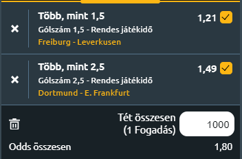 - Dortmund – Frankfurt: Két jó formában lévő csapat találkozik ma a Bundesligában. A Dortmund az elmúlt hetekben az Union Berlint és a Werder Brement, míg a Frankfurt a Heidenheimet és a Hoffenheimet győzte le. Ezt a két győzelmet azonban mindkettőt idegenben aratta a Dortmund, a legutóbbi hazai mérkőzésük a Signal Iduna Parkban 3-2-es vereséggel végződött a Hoffenheim ellen. Annak ellenére, hogy Marcel Sabitzer az első félidő hosszabbításában piros lapot kapott a Werder Bremen ellen, Edin Terzic csapata megőrizte előnyét, és fontos győzelmet aratott. A Frankfurt legutóbbi európai kalandja természetesen a belga Union Saint-Gilloise ellen ért véget az UEFA Konferencia Liga első kiütéses fordulójában. Az Union SG összesítésben 4-3-ra diadalmaskodott, de Dino Toppmoller csapata reméli, hogy a következő szezonban ismét az Európa Ligában szerepelhet. Ehhez viszont minden pontra szükség lesz. Két jó csapat találkozik, akik jó formában is vannak. Gólokra lehet számítani, legalább háromra.