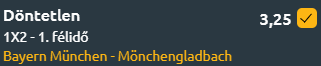 A Gladbach gyatra formában van, a legutóbbi meccsét megnyerte, előtte 7 meccsig volt nyeretlen, 4 vereséggel tarkítva. Az idegenbeli tabellán a 8. helyen állnak, tehát jobban teljesítenek ott, mint otthon. Viszont nem gondoljuk azt, hogy ez segítene péntek este, még akkor is, ha Kane nélkül nyilván jobb esélyei lesznek a vendégcsapatnak.