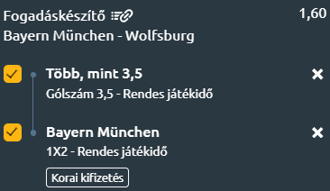 A Bayern München hazai pályán folytatja a Bundesligát, a középmezőny alsóházában található Wolfsburg ellen. A német bajnokság színvonala hanyatlott az utóbbi években, a Bayern 3,67 gólt átlagol mérkőzésenként, ami ugyan kitűnő teljesítmény a csapattól, de amekkora tudás és anyagi különbség van a bajorok és mindenki más között. 2,21 várható gólkülönbség meccsenként teljesen abnormális.