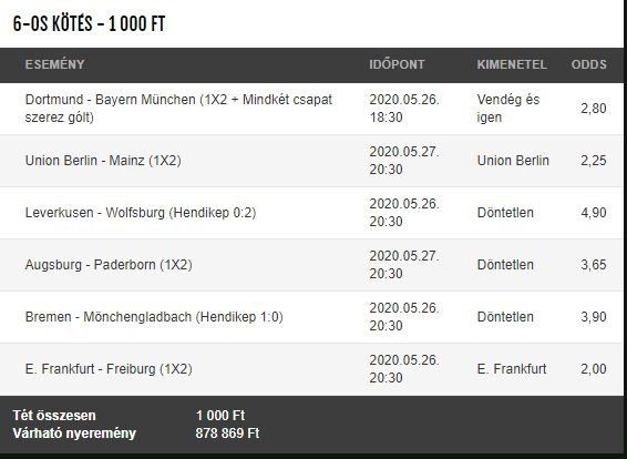 Mára a Bundesliga mai fordulójából válogattam össze egy szelvényjavaslatot.