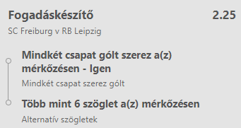 - Mivel hatalmas a tét és mindkét csapat kreatív támadófutballt játszik, a keretekben remek futballistákkal, ez a mai meccs várhatóan pörgős, jó iramú és akciódús lesz. A Lipcse abban reménykedik, hogy a Freiburg még mindig nem heverte ki a keddi súlyos kupavereség (Freiburg – Lipcse 1-5) hatásait, és ez a lendület a hasznukra válik. A Freiburg pedig egyrészt bosszút akar állni, másrészt számukra nagyon fontos lenne a BL-csoportkör. A házigazdák mindent megtesznek majd azért, hogy helyrehozzák a dolgokat, és egy javuló teljesítménnyel válaszoljanak, de figyelembe véve a vendégek támadásban jelentkező veszélyét, arra számítunk, hogy mindkét oldalon lesz gól, valamint a szögletek száma is minimum 7 lesz!