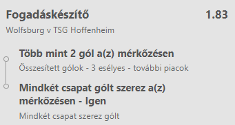 Ez a rovatom a Fogadáskészítő segítségével készült el. Az adott mérkőzést kielemezve 2-3 szempontból összeállított tippet küldök játékba, amelynek szorzója minden esetben a duplázó körüli értéket közelíti, de mégis jó esélyekkel indul! Az indoklást rendhagyó módon távirati jelleggel csinálom. Nincs fölösleges sallang, csak a sziklaszilárd tények. Ma elsőként egy Bundesliga-meccs következik: Wolfsburg – Hoffenheim.