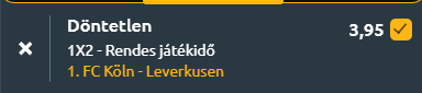 - A Köln hazai pályán szívós ellenfél, a Leverkusen pedig ritkán kap ki, de gyakran botlik döntetlen formájában. A két csapat formája alapján könnyen elképzelhető, hogy ismét megosztoznak a pontokon!