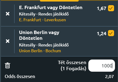 Union Berlin - VfL Bochum: Union Berlin és a VfL Bochum az An der Alten Forsterei stadionban csap össze egy fontos meccsen, amelynek a tétje a Bundesliga-bentmaradás! Legutóbb mindketten nyertek, az Union a Mönchengladbach ellen szerzett három pontot, míg a Bochum a Hoffenheimet verte meg. A Bochum elleni meccs nagyon jó lehetőség az Unionnak arra, hogy újabb pontokkal közelítsen a túléléshez. Mivel a Bochum borzalmasan gyenge idegenben, nagyon maximum a döntetlent tudom elképzelni számukra. Ez is 1X.