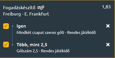 - Az elmúlt pár évben szívesen vensdégszerepelt Freiburgban a Frankfurt: rendre gólos meccsen szerzett pontot, vagy nyert. Ma is a találatokban bízunk, és G/G+overrel támadjuk be a találkozót!