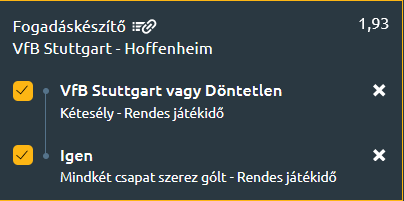 - A gólváltás simán benne van a pakliban, ugyanakkor hiába a Hoffenheim erős idegenbeli mérlege, ma mégsem gondoljuk, hogy a stuttgartiak pont nélkül maradnak!