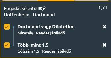 - Mire számíthatunk mindezek alapján? A Hoffenheim hazai pályán sem tud stabil teljesítményt nyújtani, míg a Dortmund idegenben is magabiztos és helyzetkialakításban erős, így ha támadói pontosabban céloznak, akkor a Dortmund nem kap ki és minimum két gólt láthat a nagyérdemű!