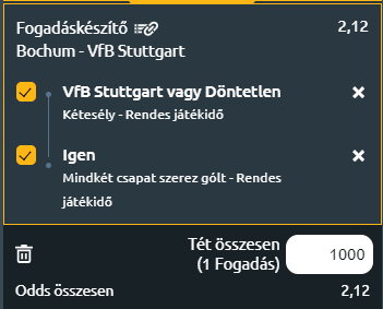 - A Bochum hazai pályán rendszeresen lő gólt, a hazai szurkolók nagyon lelkesek és inspiráló hatással vannak a csapatra. A harmadik helyen álló Stuttgart viszont most egyértelműen jobb, még az erősebb ellenfelek ellen is betalál a hálóba, és ma is mindhárom pont megszerzésére törekszik majd ezen az idegenbeli mérkőzésen. Az óvatosság azt diktálja, hogy a hazai pálya miatt a döntetlent is vegyük figyelembe, de minimum két gólt megszavazhatunk a meccsen.