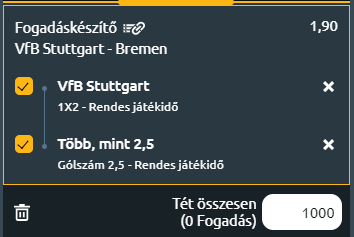 Tipp: Stuttgart nyer + több mint 2,5 gól a mérkőzésen