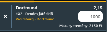 - A Wolfsburg csapnivaló támadásban, azért nem állnak már most rosszabb helyen, mert a védelem áll a lábán. A Dortmund viszont mostanában gólerős és erőteljes támadójátékot rak ki a pályára. Ma a vendégsiker a legnagyobb esély.