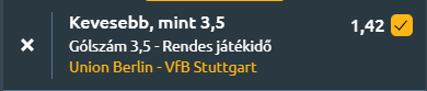 Ezek az ötletek kiválóan alkalmasak arra, hogy egy kétmeccses duplázóban az egyik tagot adják. Az odds alacsonyabb, viszont ezzel párhuzamosan a kockázat mértéke is csökken. Az Union Berlin stabil középcsapatként várja a Stuttgart elleni bajnokit, miközben a vendégek gyenge formájuk miatt kezdenek lemaradni az európai kupaszereplésért folyó harcban.