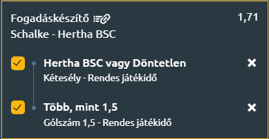 - A Schalke számára a szurkolói elvárások mindig extra nyomást jelentenek, és az idénykezdetre vonatkozó aggodalmak nem alaptalanok: gyenge felkészülési eredmények, fontos játékosok hiánya és az új vezetőedző beépítése mind kérdésessé teszik a csapat stabilitását. Ezzel szemben a Hertha Berlin úgy tűnik, fokozatosan formába lendül, a keret is tudatosan erősödött, és az előző idény végére már összeállt Leitl elképzeléseinek megfelelően. Mindezek alapján, bár szoros mérkőzésre van kilátás, a Schalke szerencsés esetben csak a döntetlennek örülhet majd, a vendégsikernek nagyobbak az esélyei! A tipp X2 és legalább két gólt láthatunk a meccsen!
