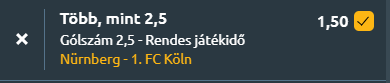 - A 2. Bundesliga hajrájához érkezve fontos mérkőzést rendeznek péntek este a Max-Morlock-Stadionban, ahol a középmezőnyhöz tartozó Nürnberg a feljutásra hajtó második helyezett FC Kölnt látja vendégül. A vendég Köln esélyesebbként érkezik a találkozóra, hiszen az idény során több győzelmet arattak (16 vs. 13), kevesebbszer kaptak ki, és jobb a védelmük is: meccsenként csupán 1,16 gólt engedélyeznek ellenfeleiknek, míg a Nürnberg majdnem 1,7-et. Formában egyik csapat sincs: a hazaiak legutóbb 3-1-re kikaptak Elversbergtől, és az elmúlt öt mérkőzésükből csak egyet nyertek, miközben 2,6 gólt kaptak átlagosan – ez rendkívül gyenge mutató. A Köln szintén csak egy győzelmet szerzett az elmúlt öt fordulóban, de kevesebb gólt kapott, és összességében stabilabb teljesítményt mutatott. A két csapat korábbi öt egymás elleni meccséből hármat ugyan Nürnberg nyert, de a legutóbbi találkozón már a Köln győzött 3-1-re. Mindezek alapján egy gólgazdag meccs a legvalószínűbb, ahol a 2,5 gólnál több is könnyen összejöhet.