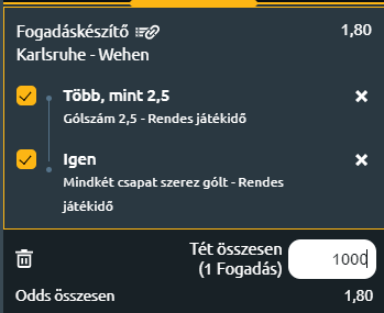 - Egy jó formában kévő Karlsruhe neki fog esni a vendégegyüttesnek, a Wehen viszont ezt gólokkal fogja viszonozni. A kimenetel sorsa erősen kétséges, de gólok lesznek itt is, ott is, összesen legalább három!