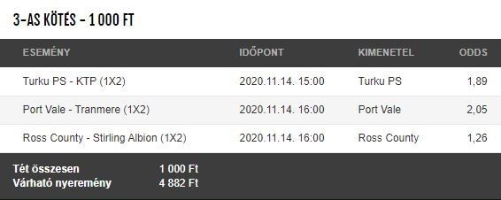 - Az angol negyedik vonalban a Port Vale a 7. helyen áll. 10 meccs után 6-1-3 a mérleg, 12 lőtt gól és stabil védelem hét kapott találattal. A csapatnál a playoff a kitűzött cél és ehhez a kötelezőket hozni kell. De a Port Vale szokta is hozni. A Tranmere 17. helyen áll, ennek egyik oka pedig a gólszegény csatársor. Mindössze hét találatot jegyeztek eddig, ez pedig kevés. A Port Vale esélyesebb a győzelemre ma, a szorzó pedig remek.