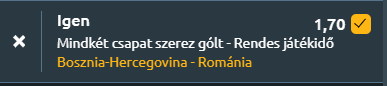 - A két együttes formája és statisztikái alapján rendkívül nyílt találkozóra van kilátás, ahol mindkét oldalon erős támadójáték, ugyanakkor ingatag védekezés figyelhető meg. Bosznia-Hercegovina kilencmeccses gólszerző sorozata, a románok hat gólos meccse a legutóbbi hétből, valamint mindkét fél sebezhető hátsó alakzata alapján logikusnak tűnik, hogy mindkét válogatott betalál.