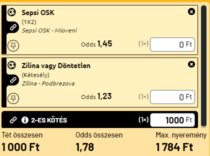 - A Zsolna régi motoros a szlovák élvonalban, szinte mindig a felsőházban szerepelt az elmúlt években. Tavaly a 6. helyen ért be a playoff után, tavalyelőtt 3. az alapszakaszban és 4. a rájátszás után, még egy évvel korábban pedig második lett mind az alapszakaszban, mind a végére! A nemzetközi kupák rendszeres résztvevője. Idén felemásan kezdett, az eltelt 8 fordulóban kétszer kapott ki, egyszer a Slovantól, ami belefér, legutóbb pedig peches körülmények között úgy kaptak ki a Skalickától, hogy szinte végig nyomtak a meccsen. Ma javítani kell a Podbrezova ellen akkor is, ha ők egészen jól kezdtek. Sok múlik Patrik Myslovicon, aki nem csak remekül lát a pályán, hanem oda is ér a kapu elé. Ha a Zsolna a jobbik arcát mutatja ma, akkor nem kap ki a meccsen! 1X a tippem.A másik meccsen sokkal egyértelműbb a helyzet. A két meccsen sorozatban vereséget szenvedő Sepsi hazai pályán meg kell verje a kiesőjelölt Miovenit. Sokkal jobb csapat!