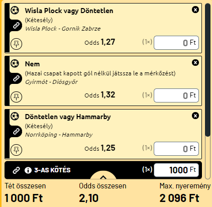Hárommeccses vegyigyümi-szelvény: