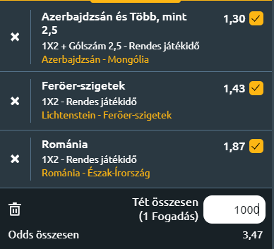 - Azerbaijan – Mongólia: A házigazdák a 2024-es Európa-bajnokság utolsó selejtezőmérkőzésén Belgiumtól elszenvedett 5-0-s vereség után lépnek pályára, míg Mongólia tavaly októberben 1-0-s vereséget szenvedett Afganisztán ellen. Azerbajdzsán két győzelemmel, egy döntetlennel és öt vereséggel büszkélkedhet az Euro 2024-es selejtező nyolc mérkőzéséből, amelyeken hét pontot gyűjtöttek, és az F csoport negyedik helyén végeztek. Az azeriek barátságos mérkőzésen legyőzték Moldovát, Észak-Macedóniát és Jordániát is, ezek közül az első kettő egyértelműen jobb csapat, mint Mongólia nemzeti csapata. Ez az egyértelmű minőségkülönbség egyértelmű győzelmet eredményez.