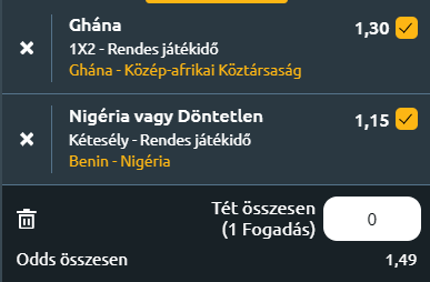 - Benin – Nigéria: Benin bizakodó lehet az előző mérkőzésen aratott győzelme után, különösen hogy hazai pályán játszik, és reméli, hogy kihasználhatja az extra pihenőnapot. Nigéria eddig három döntetlent játszott a selejtezők során, és most mindent meg kell tenniük, hogy megszerezzék első győzelmüket. A csapatnak javítania kell a teljesítményén, ha el akarja kerülni, hogy egymást követő két világbajnokságot kihagyjanak. A C C csoport első és utolsó helyezettje között mindössze három pont a különbség, ami azt jelzi, hogy a csoport rendkívül kiegyenlített, és senki sem fogja könnyen megszerezni az első helyet. Nigéria csapata minőségben jobb, viszont a hazai pálya, Benin lendülete alapján a döntetlent is figyelembe kell venni! X2 a tippem.