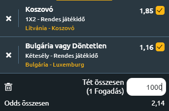 - Bulgária - Luxemburg: Bulgária évek óta csak szenved. Aki látta 1994-ben a Sztoicskov-féle bolgár válogattat az fel sem ismerné a maiak játékában a futballt. De aztán Ilian Iliev vezetésével mintha megindult volna valami. Idén a bolgár válogatott a Nemzetek Ligája nyitómérkőzésén, Fehéroroszország ellen elért gól nélküli döntetlent követően Észak-Írországban aratott nehéz győzelmet. Ilian Iliev vezetőedző, aki tavaly év végén egy önbizalomhiányos csapatot örökölt, még nem kapott ki a nemzeti csapat vezetőedzőjeként, és nyolc mérkőzéséből hat döntetlen és két győzelem született. Bolgár kollégáikhoz hasonlóan Luxemburg sem tudta kvalifikálni magát az Euro 2024-re, de a rájátszás elődöntőjébe jutott, miután 10 csoportmeccsen rekordot jelentő 17 pontot gyűjtött. Az idei Nemzetek Ligájában a még mindig Luc Holtz régóta szolgáló edző által irányított csapat eddig nem tudott erre a fejlődésre építeni, és az elmúlt hónapban sem pontot, sem gólt nem szerzett, pedig sokkal többet birtokolta a labdát, mint az első két ellenfele. Bulgária ezen a hétvégén is folytathatja pozitív sorozatát, mivel Luxemburg képes mezőnyben jól játszani, de kapura eléggé hatástalan. 1X a tipp.