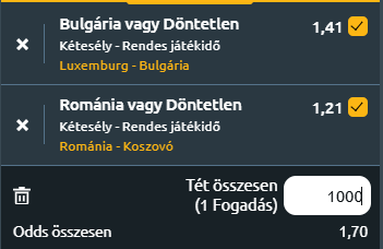 - Románia – Koszovó: Románia hazai pályán fogadja Koszovót a Nemzetek Ligájában, és a mérkőzés tétje komoly, hiszen a hazaiak akár már most bebiztosíthatják feljutásukat a B-ligába, míg Koszovónak egy győzelem kellene ahhoz, hogy esélye maradjon az első helyre. Románia októberi győzelmei révén vezeti a C-liga 2. csoportját, eddigi négy mérkőzésükből mind a négyet megnyerték, és 12 ponttal állnak az élen. Októberben Dennis Man korai találatával 3-0-ra nyertek Ciprus ellen, majd Litvániában is győztek 2-1-re Denis Dragus második félidőben szerzett góljának köszönhetően. Szeptemberben Koszovót és Litvániát is magabiztosan verték, mindkét találkozón három gólt szerezve, ezzel jelezve, hogy komolyan veszik a feljutásért folytatott harcot. Koszovó szeptemberben 4-0-s vereséget szenvedett Romániától, ám azóta látványosan javított teljesítményén. Az utóbbi három mérkőzésen kilenc gólt szereztek és mindössze egyet kaptak, ami lehetőséget adott nekik, hogy felzárkózzanak a csoport második helyére. Franco Foda, korábbi osztrák szövetségi kapitány vezetésével a csapat otthon és idegenben is megverte Ciprust, valamint 2-1-re nyert Litvániában, Ermal Krasniqi és Edon Zhegrova góljaival. Románia hazai pályán és jelenlegi formájában egyértelmű esélyesként lép pályára. Októberi veretlenségük és Koszovó elleni, szeptemberi 4-0-s győzelmük azt mutatja, hogy a Lucescu által vezetett román csapat erős és egységes. Koszovó ugyan javuló tendenciát mutatott az elmúlt mérkőzéseken, de a csoportot vezető Románia védekezését és támadójátékát nehéz lesz felülmúlni a Liga C szintjén. Döntetlennél rosszabb eredmény nem várható Románia szempontjából. 1X