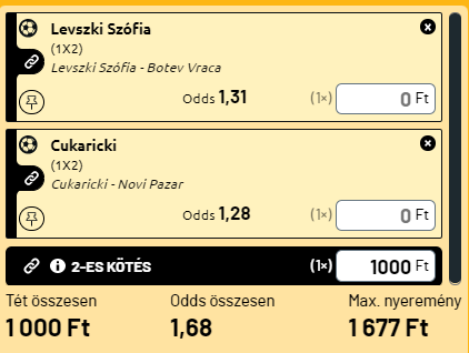 - A másik a szerb bajnokság erős középcsapata a Cukaricki, amely jelenleg kimagaslóan jól szerepel és 3. helyen áll a tabellán, a tökutolsó Novi Pazarral játszik. Nyilván ez is kötelező, a Cukaricki háza táján tudják, hogy ez a bronzérmes helyezés nem fog kitartani a végéig, de azért mindent meg kell tenni érte és az efféle kötelezőket hozni kell!