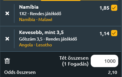 - Namíbia – Malawi: Namíbia és Malawi feszül egymásnak a 2025-ös COSAFA Kupa második csoportkörében, ahol mindkét csapat az első győzelmére hajt. A helyzet azonban eltérő: Namíbia jó formában, veretlenségi szériával érkezik, míg Malawi sorozatban három vereséget szenvedett, köztük egyet éppen mostani ellenfelétől a világbajnoki selejtezők során. A namíbiaiak magabiztosabbak lehetnek a csütörtöki 1-1 után, ahol emberhátrányban is visszajöttek Angola ellen, míg Malawi egy hajrában bekapott góllal kapott ki Lesothótól, támadásban gyenge teljesítményt nyújtva. Namíbia középpályáját és támadósorát egyaránt stabil, összeszokott játékosok alkotják, és Collin Benjamin csapata az elmúlt hat vb-selejtezőn is remekül szerepelt, így motiváltan érkezik a meccsre. Malawi ezzel szemben nemcsak a COSAFA Kupában, hanem a vb-selejtezők során is formán kívül van, és most is komoly feladat vár rájuk. A két csapat elmúlt 16 egymás elleni meccséből 12-t Namíbia nem veszített el, és ez az erőviszony most is meghatározó lehet. Mindezek alapján Namíbia esélyesebb, várhatóan uralja majd a mérkőzést, és ha nem is simán, de megszerzi a három pontot! Tipp: Namíbia nyer