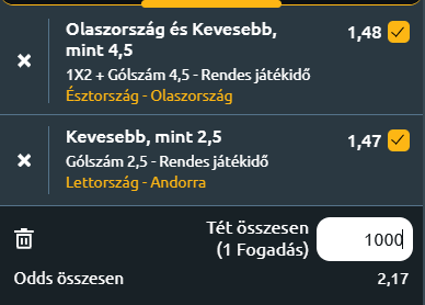 - Lettország – Andorra: Andorra számára rendkívül nehezen alakul ez a selejtezősorozat, hiszen eddig mind az öt mérkőzését elveszítette, így pont nélkül a csoport utolsó helyén áll. Koldo Alvarez együttese 10 gólt kapott, miközben egyszer sem talált be, ami jól mutatja, hogy a támadójáték továbbra is a legfőbb gyenge pontja a válogatottnak. A lett válogatott eddig öt mérkőzést játszott, és mindössze két gólt szerzett, ami támadóhatékonyságukról sokat elárul. Paolo Nicolato együttese egy győzelemmel, egy döntetlennel és három vereséggel négy pontot gyűjtött, amivel a csoport negyedik helyén áll, négy ponttal lemaradva a második Albánia mögött. A selejtezősorozat eddigi menete megmutatta, hogy Lettország leginkább a stabil védekezésre és a szoros mérkőzésekre épít. Mindkét válogatott számára kulcsfontosságú a találkozó, ám sem Andorra, sem Lettország nem a gólgazdag mérkőzéseiről híres. A házigazdák eddig nem tudtak betalálni a sorozatban, míg a vendégek is mindössze kétszer találtak a hálóba öt meccs alatt. Andorra várhatóan zárt védekezéssel próbálja majd kivédekezni a nyomást, míg Lettország elsősorban a biztonságos játékra és egy-egy kontrára építhet. Az előzmények, a gólínség és a csapatok játékképe alapján egy alacsony gólszámú mérkőzés várható, 2,5 gól alatt.