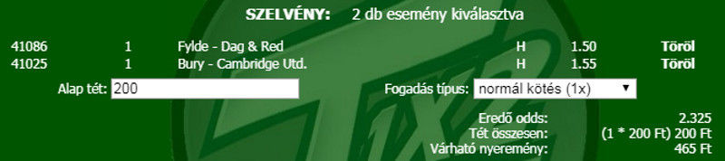 Nagy örömömre tegnap is lejött a szelvény, így egyre nagyobb az esélye egy bukásnak. De természetesen megyünk tovább, próbálkozunk a legjobb érvekkel. A mai tutikat én kihagyom, sem az Atletico, sem a Milan, sem a Barca, sem a Juve meccseit nem nézem, hisz ezekre a meccsekre bárki tud fogadni. Inkább két alsóbb osztályú angol bajnokira hívnám fel a figyelmet! A mai szelvény eredője 2,32 lett.
