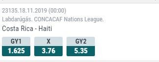 Mindent összevetve, ha a hazai csapat csak kicsit is odafigyel, akkor nem is lehet kétséges, hogy legyőzi Haiti gárdáját San Joséban, a Ricardo Saprissa Aymá Stadionban, minden bizonnyal szép számú szurkolósereg előtt! A hazai győzelemre több irodánál is 1.60 fölött lehet találni szorzót!
